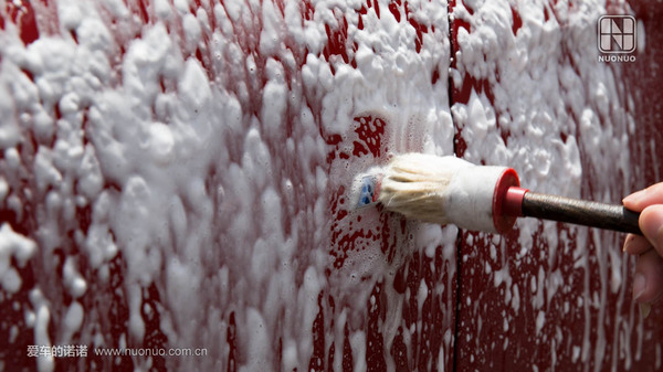 接著(zhù)仍是跟上文相同沾上清潔液清潔漆面。每清潔一個(gè)漆面就要對羊毛巾做一番清潔。在夏天假如自個(gè)清潔,主張每清潔一個(gè)面就用清水將清潔液沖潔凈,夏天的水分蒸騰實(shí)在太馬上。